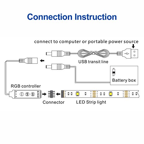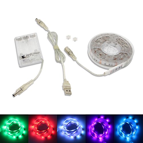 Battery Operated USB LED Strip Lights, BT 2m/6.56ft RGB SMD 5050 60 LEDs IP65 Waterproof Flexible Color Changing Light with Mini Controller and Battery Box for Decoration