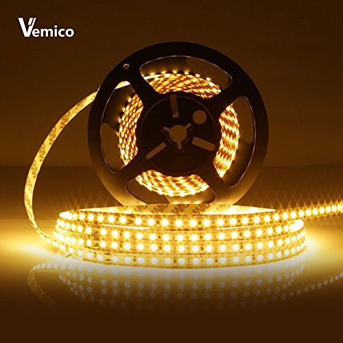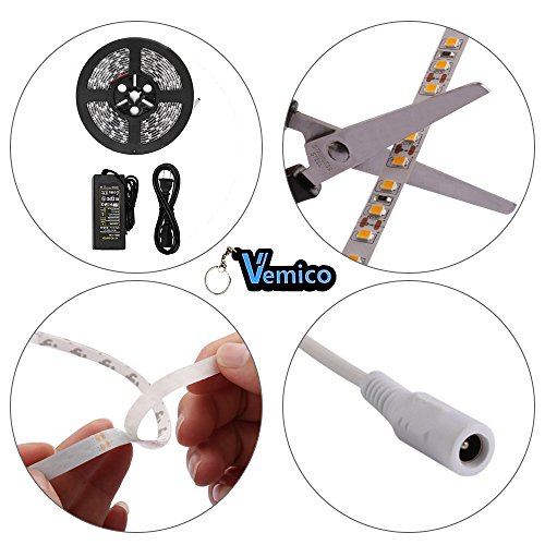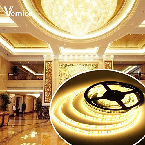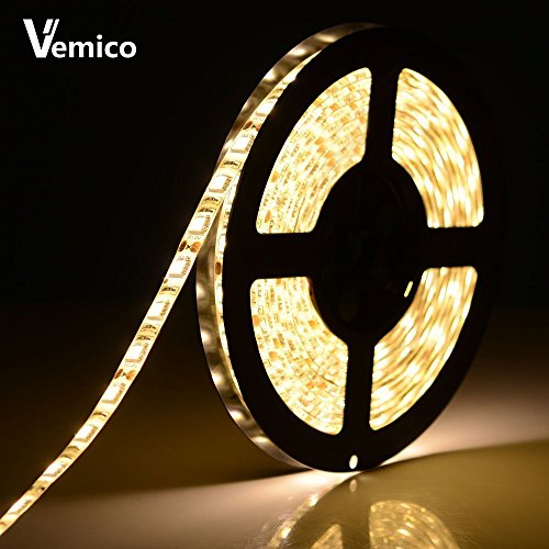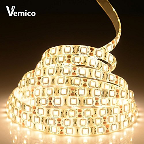 Vemico LED Strip Light Warm White SMD5050 300LEDs 3000K 12V60W Flexible Flat LED Tape Light with a DC12V/5A Power Supply (Waterproof)