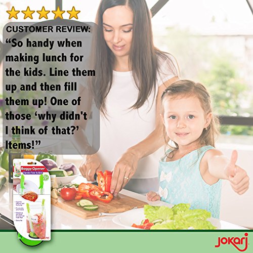 Studio : Jokari Publisher : Jokari Binding : Kitchen Product Description Baggy Rack 2 pack - Sandwich bags fasten under clips to hold open for filling Adjustable arms hold various bag heights and sizes Folds flat for easy storage Hands-free operation Use as a baggy dryer to reuse sandwich bags. 0