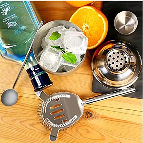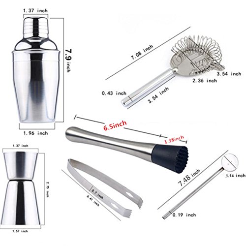 ★ The Set Includes: 1x Muddler, 1x Twisted Bar spoon, 1x Hawthorne Cocktail Strainer, 1x shot measurers ,1x 19oz Stainless Steel Manhattan Cocktail Shaker, 1xCocktail/Coffee Stirrers with Round head,1x ice tongs,3x Bottle Pourers