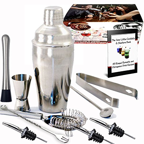 Cocktail Maker Set 10 Pce Home Cocktail Making Kit with Manhattan Cocktail Shaker Bar Measures, Twisted Bar Spoon, Muddler, Mixer, Bottle Pourer, Ice Strainer & Ice Tongs