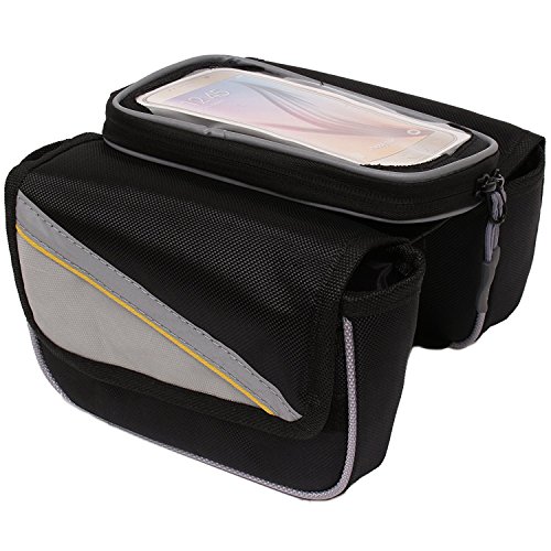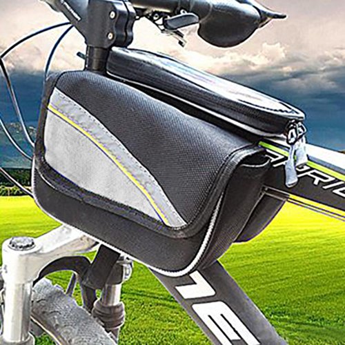 Studio : Sportsun Publisher : Sportsun Product Description Versatile bike bag We designed the bike bag with a clear transparent PVC window touchscreen for smartphone with screen size 7". The bag can be mounted on most kind of bicycles such as road bikes or mountain bikes. Furthermore we created the bag with two sided pocket stitched with high quality polyester fabric, ultra-resistant. Security bag We thought about the security by adding reflective tapes on each side of the bag so you will ride safer at night. Moreover you will be able to put it on the tube of your bike easily and fast so you can reach your phone and belonging when you want as you keep an eye on the road. Specifications For phone with 7" screen size Bicycle bags size 6.69"*1.9"*4.33" Total size 11.8"*6.69"*1.97" Color black Material: Nylon and polyester Package contains 1x Mountain Road Bike Bag 0