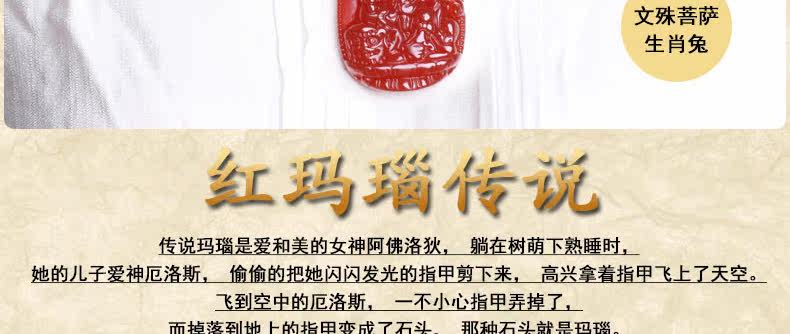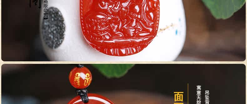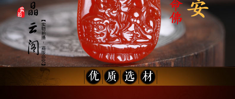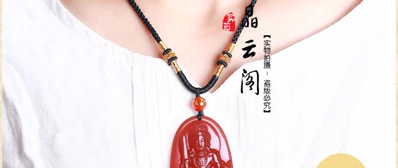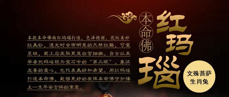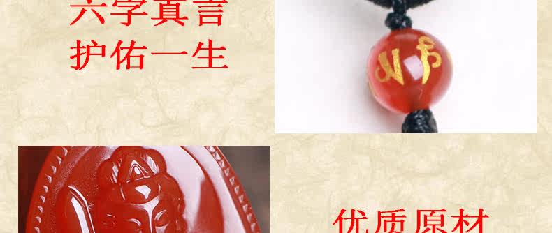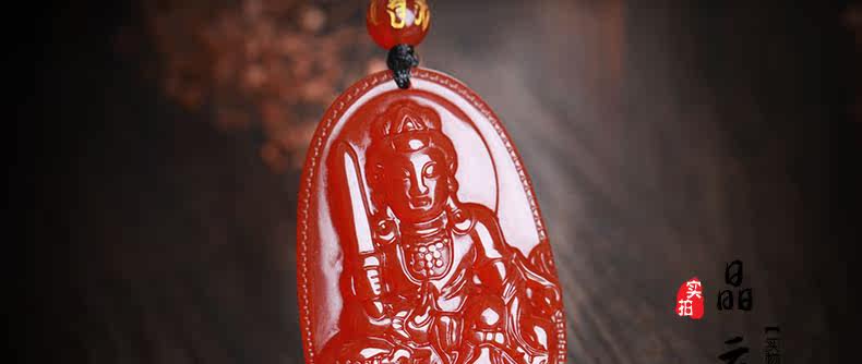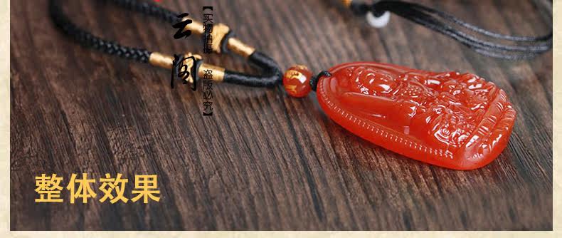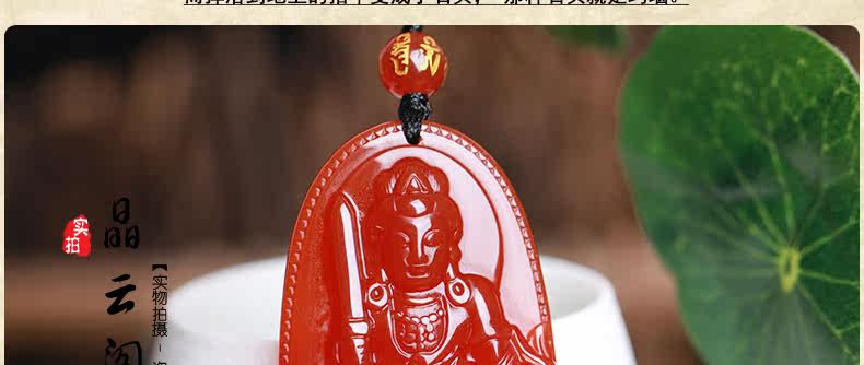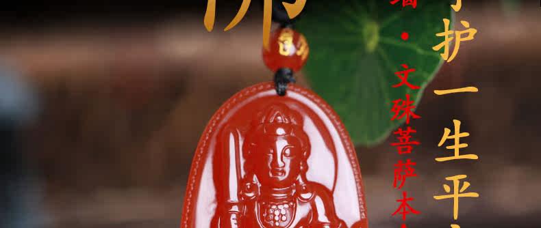 开光 天然红玛瑙文殊菩萨本命佛吊坠 生肖属兔男女士项链水晶挂件