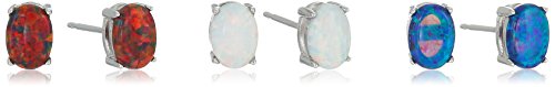Sterling Silver Created Australian Black Opal, Created Mexican Opal and Created White Opal Oval Stud Earrings 3-Pair Set