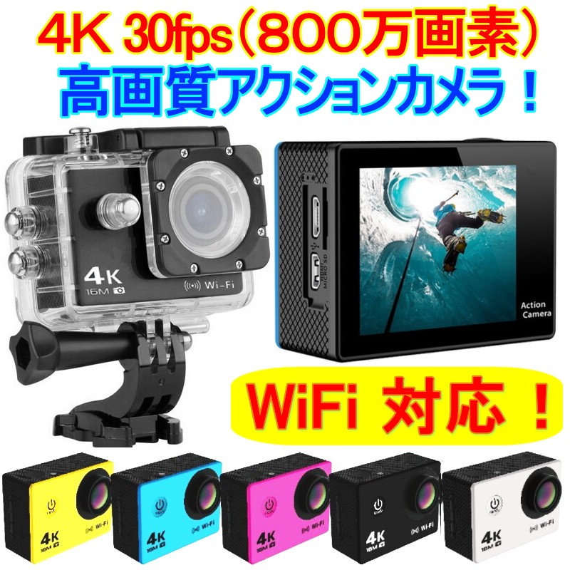 ●4K 16M アクションカメラ Wi-Fi対応 スポーツ カメラ(GOPRO HERO4を超える性能! 比較表参考に)■高画質4K(フルHD1080Pの4倍)を30fpsでの録画が可能!■超高圧の30M防水で、バイクM、自転車、カート、車にも取り付け可能なアクション カメラ「4K 16MB WiFi」!■液晶モニター付きだからその場で再生、また、Micro HDMI 端子接続でテレビに映すことも可能。■ドライブレコーダー機能も搭載で、支持車載記録ができる優れもの。■あなたのカメラの寿命を延長する取り外し可能なバッテリー交換も容易です。■スポーツに、レジャーに、防犯カメラにと様々なシーンで活躍できる軽量スポーツカメラです!■Wi-Fi接続対応でスマートフォンから設定の変更や画像の確認、撮影画像のダウンロード可能です! (専用アプリでスマホからも操作が可能! AppStore/GooglePlayよりダウンロード)■並行輸入品:中国製