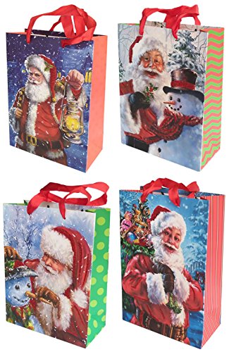 Christmas Gift Bags with Handle For Party Celebration Wrapping (7"L9.5"H3.3") (4 Pack Christmas Snowman)