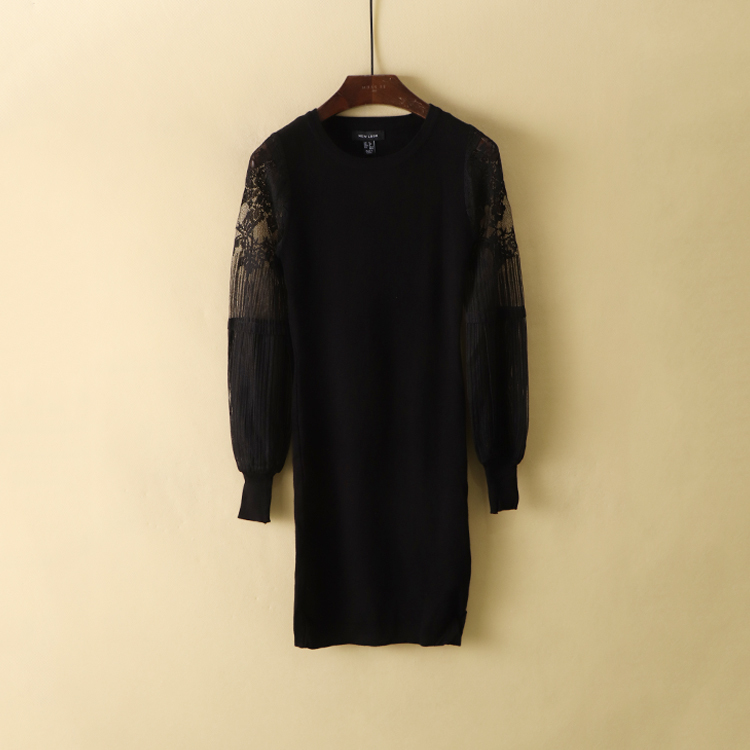 大人エレガント シースルー ボリューム袖 黒ニット ワンピース ふんわり袖 モード 大人女子 タイト ロング