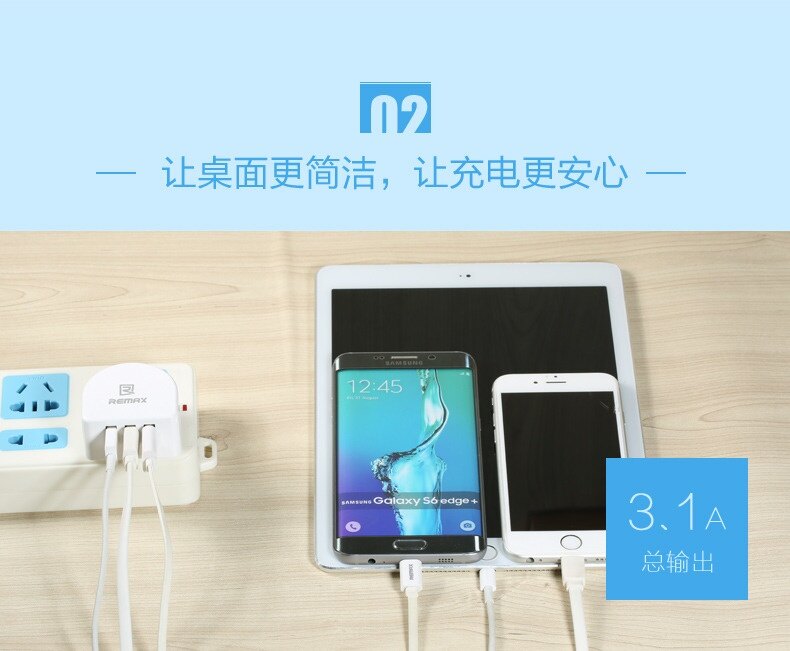 Remax Charger 3 Port USB & 2 Cigarette Plug -