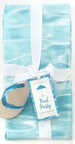 Two's Company 51277 Pool Party Dish Towel with Flip Flop Opener, Blue