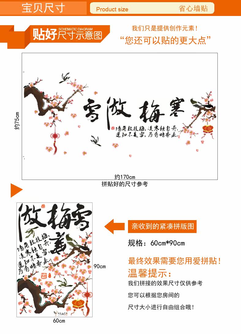 可移除墙贴纸壁饰贴画浪漫卧室客厅电视墙背景书法装饰家和万事兴