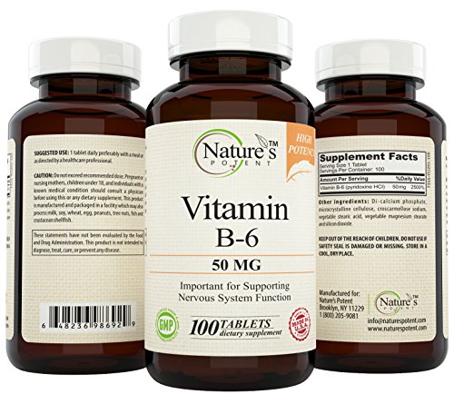 -. Feature : Important for Nervous System Function / Supports Healthy Homocysteine levels / High Potency Vitamin B-6 Tablets / Pharmaceutical Grade - Nature's Potent Vitamin B-6 50mg supplement for Nervous System Function - Made to Nature's Potent Guaranteed Purity Potency Standards / 100% Safe - All our products Made in USA in FDA & GMP Certified Facilities - Third Party Tested to insure 100% Best Quality Products! 100% MONEY BACK GUARANTEE!