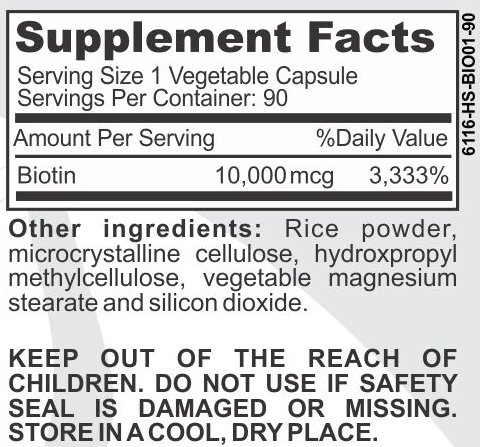 -. Feature : WORKS FAST: Maximum Strength And Natural. 10,000 mcg Of Pure Biotin. / MULTIPLE BENEFITS: Supports Healthy Hair Growth, Skin And Nails. Works For Men And Women. / NATURAL AND SAFE: Contains No Gluten, GMO Free, No Preservatives Or Artificial Colors. GMP Certified, Made In UDA FDA Approved Facility. / VEGETARIAN FRIENDLY: Easy To Consume Vegetable Capsules. One Bottle Lasts 90 Days. / IRONCLAD GUARANTEE: Guaranteed To Work Or Your Money Back, No Questions Asked. Order Now!