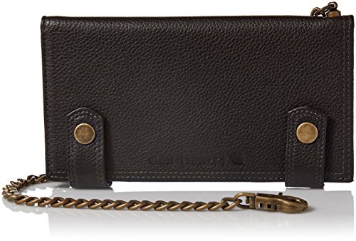 Product Description Full grain leather, exterior eighteen inch chain with dog leash clip, double stitched edge, ten credit card pockets, four side pockets, id window, embossed log 0