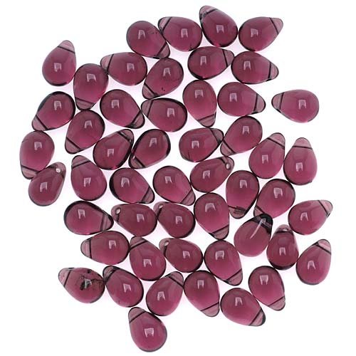 Czech Glass Beads 9mm Teardrops Amethyst Purple (50)