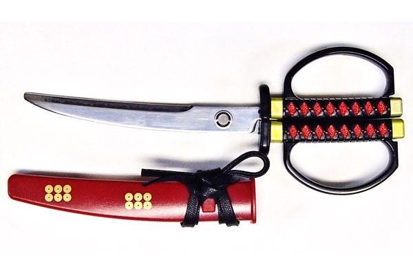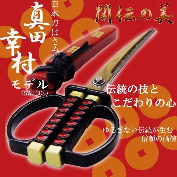 真田幸村をイメージしたデザインはさみです。鞘には真田家の家紋六文銭入り!外国の方へのお土産や、お友達へのプレゼントなどにオススメです。 |