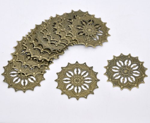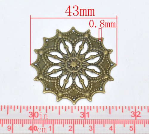 PEPPERLONELY Brand, 48 Antique Bronze Filigree Flower Focal Wraps Connector Components 42mm