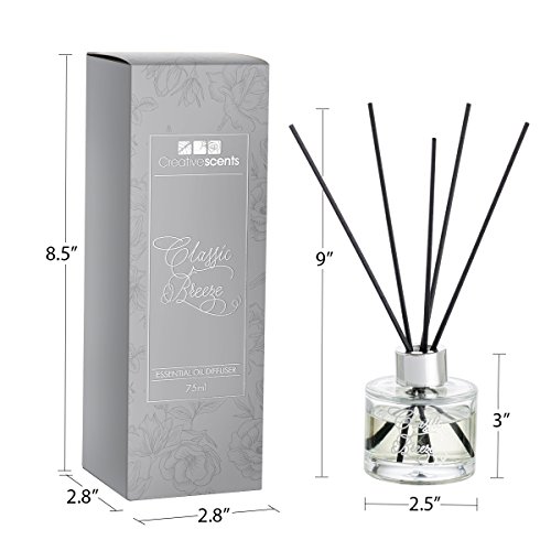 Classic Breeze Essential Oil Reed Diffuser Sticks in Gift Box, Aromatherapy-Grade Oils Blend, Natural Scented Diffusing Kit, Non-Toxic Home Spa Fragrance Diffuser Set, 75 ML/2.5 Oz.(Creative Scents)
