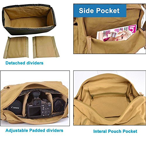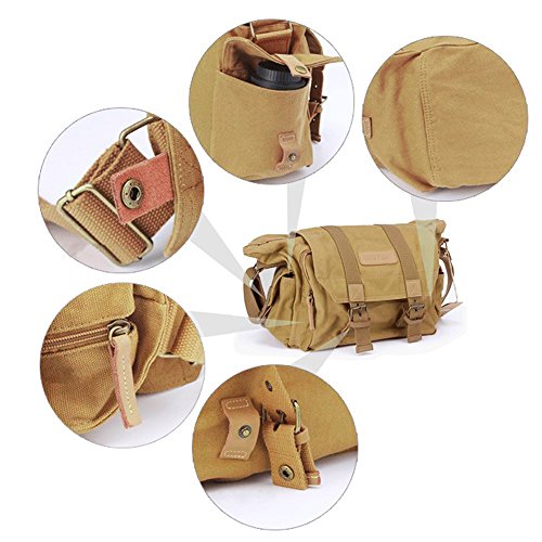 -. Title : BESTEK Waterproof Canvas DSLR Camera Shoulder Bag with Shockproof Insert - Khaki