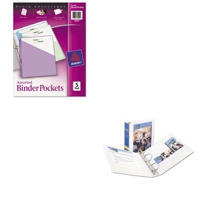 Studio : Avery Publisher : Avery Binding : Office Product Product Description lt;stronggt;AVE05741lt;/stronggt;lt;BR/gt;Avery Economy View Binder with Round Ringslt;BR/gt;Customize the front cover, back cover and spine crystal-clear overlays to meet your individual needs. No amp;quot;bunchingamp;quot;, pages lie flat against back cover. Two inside pockets for additional storage of loose documents. Capacity Range Max: 3amp;quot; Sheet Capacity: 460 Colors: White.lt;BR/gt;lt;BR/gt;lt;stronggt;AVE75254lt;/stronggt;lt;BR/gt;Avery Economy View Binder with Round Ringslt;BR/gt;See-through pocket holds up to 20 sheets. Fits standard three-ring binders. Diagonal cut front flap for easy access to contents. Durable, nonstick polypropylene won't lift print. Colors: Assorted Height: 11amp;quot; Width: 8 1/2amp;quot; Quantity: 5 per pack. 0