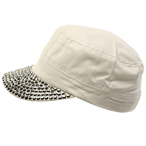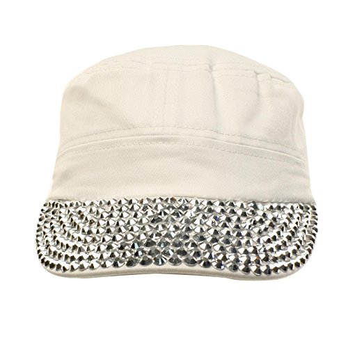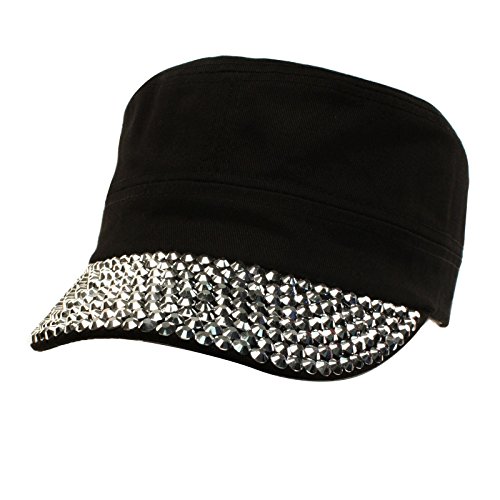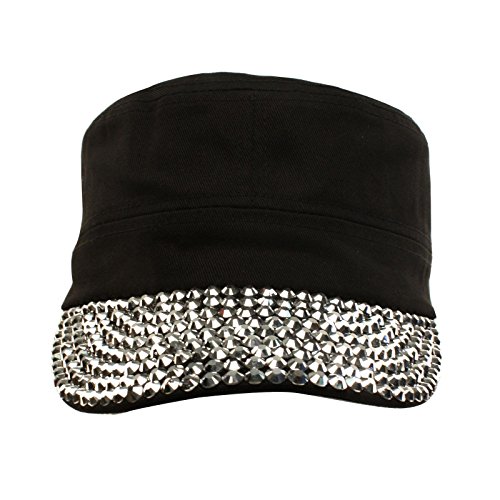 Ladies Girls Cute Pretty Plain Blank Jewel Rhinestone Stunning Sparkle Bling Bling Sparkle Studded Visor Bill Buckle Belt Adjustable Strap Cadet GI Army Castro Cap Hat Great for Ladies and Teens. Cool and so cute blank plain bling bling studs jewel rhinestone adorned over hat crown and visor. Adjustable velcro back and interior sweatband. ?Stiff curved brim. ?What about a bad hair day, perfect key hole for your pony tail. ?Great for all seasons, Perfect for warm or cool weather to keep harmful sun and UV rays out of your face. Great for everyday wear, or just for fun! ?Will compliment any outfit. ?Mix and match with your existing wardrobe. ?Great for vacations and outdoor activities. ?Stand out and be different, how about a sporting event. 0 |