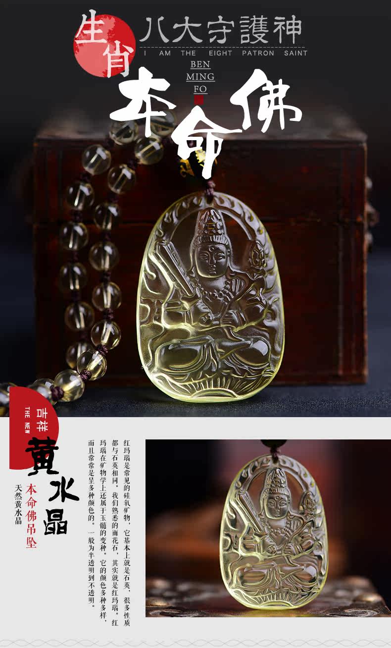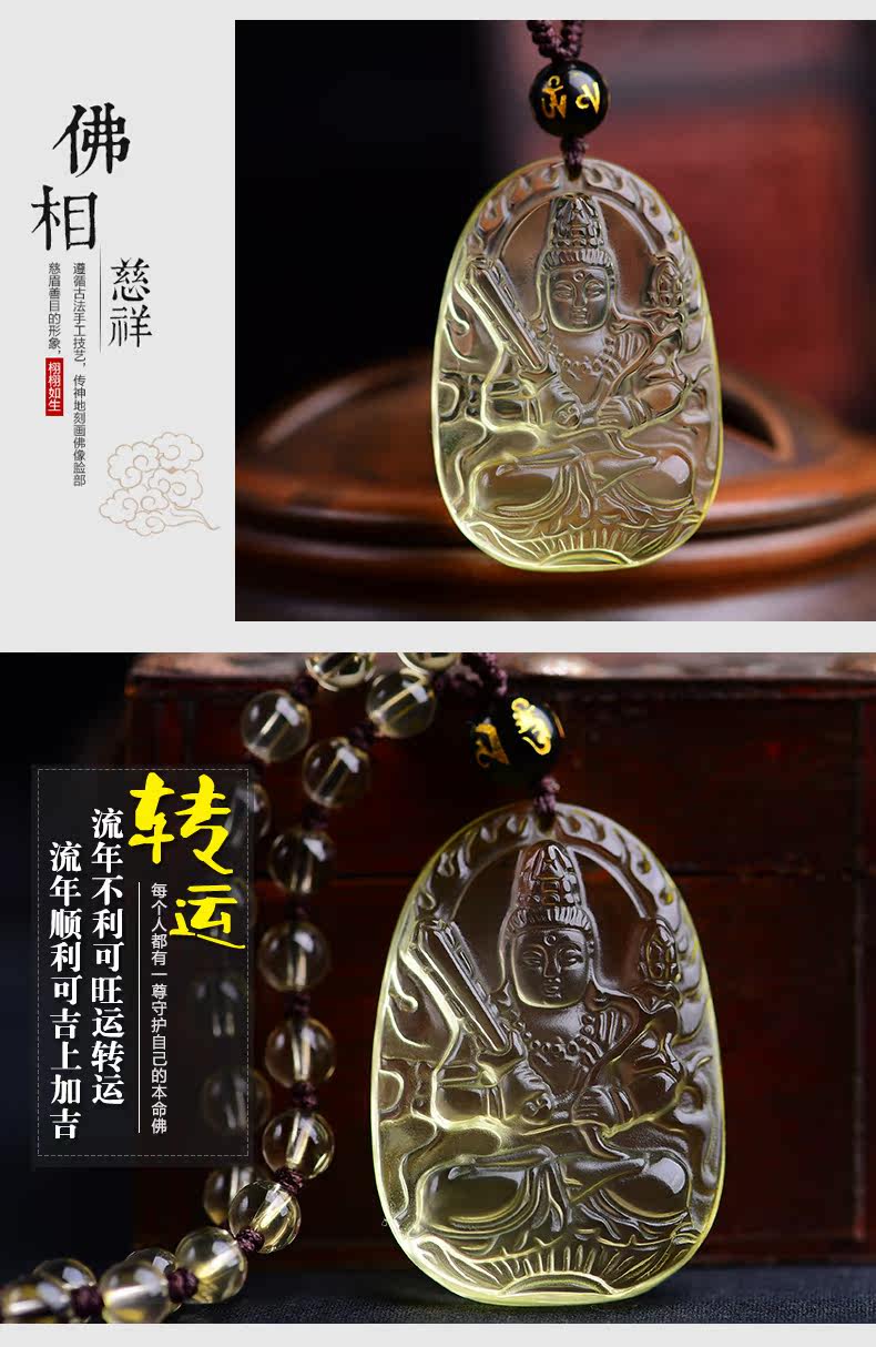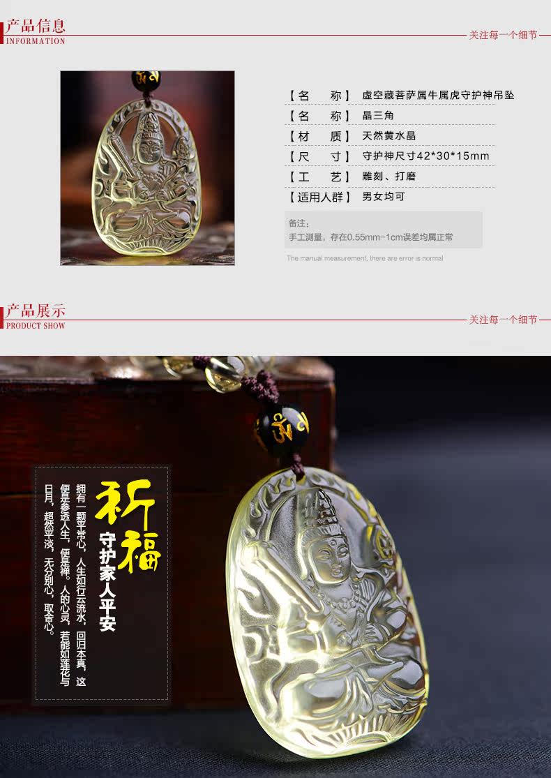 开光天然黄水晶虚空藏菩萨吊坠男女项链生肖本命佛牛虎守护神挂件