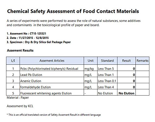 30+ YEAR EXPERIENCE in the Industry of Silica Gel Desiccant - Premium Quality Pure and Safe Silica Gel without Cobalt Chloride. NO RISK (Packet dimension : 2 1/4 X 3 1/4 , Silica Gel Beads Size : about 1 ~ 3 mm)