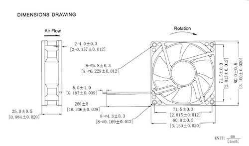 Gdstime 12V 80mm x 80mm x 25mm Brushless DC Cooling Fan