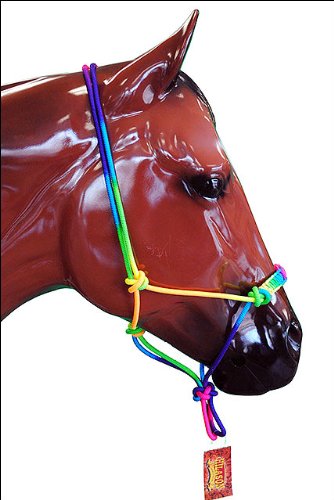 Hilason Braided Nylon Rope Halter 3/8" Diameter Average Horse Size - Rainbow