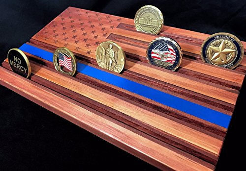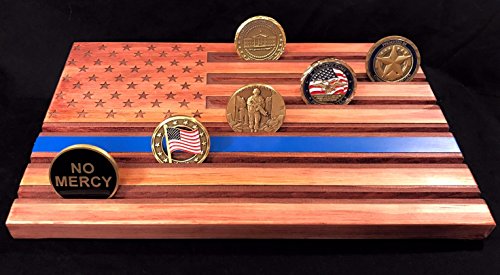 Thin Blue Line Red American Flag Challenge Coin Display