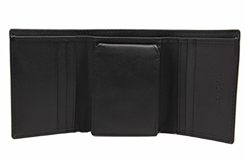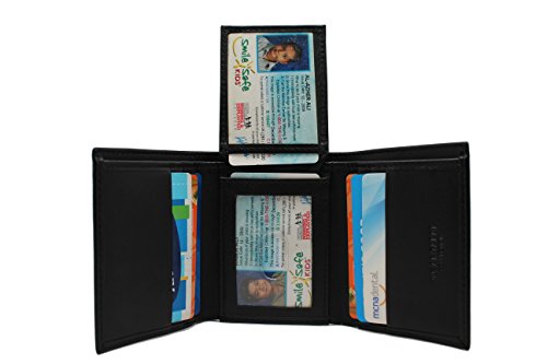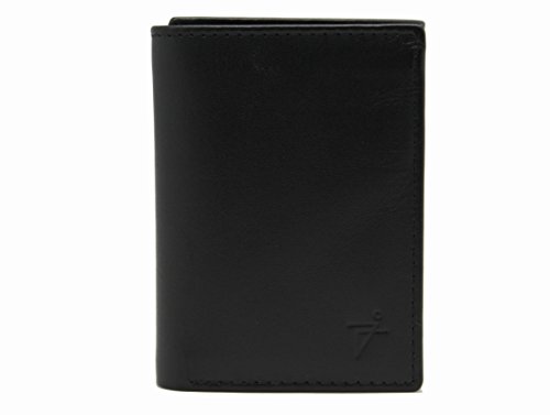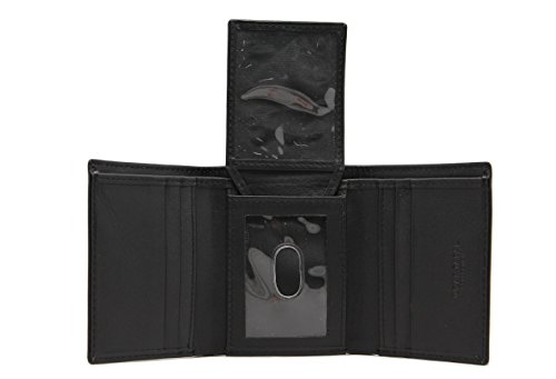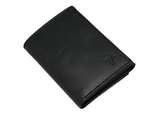 -. Title : Men's Minimalist Black Cow Leather Tri-fold Wallet Key Holder Center Flips up in Gift Box (53-33)