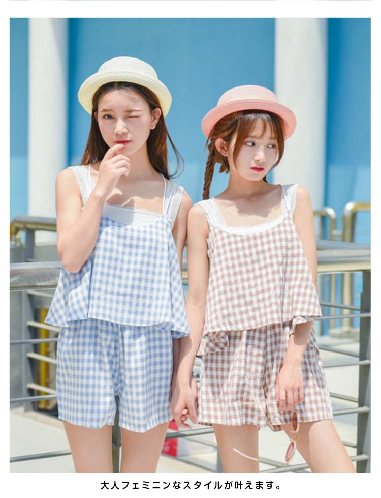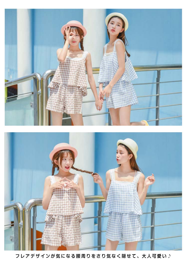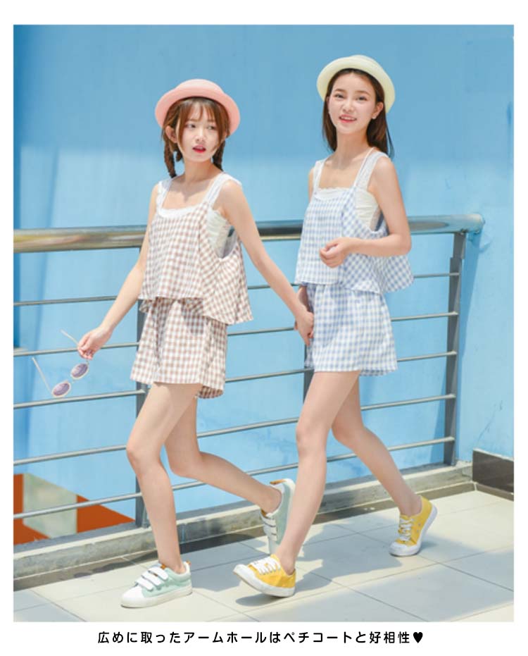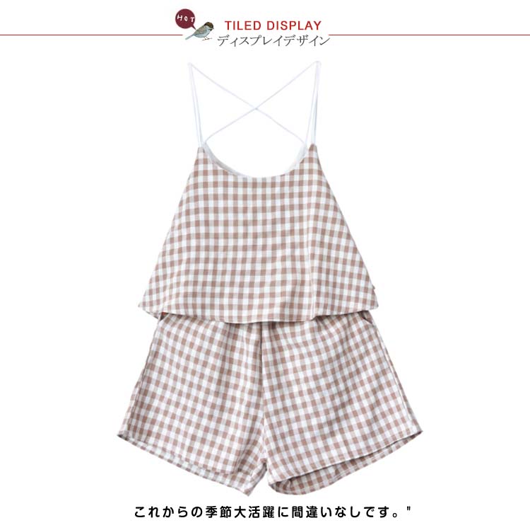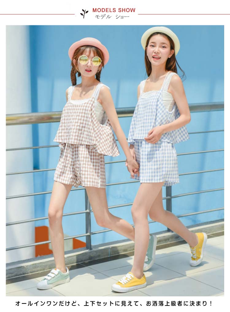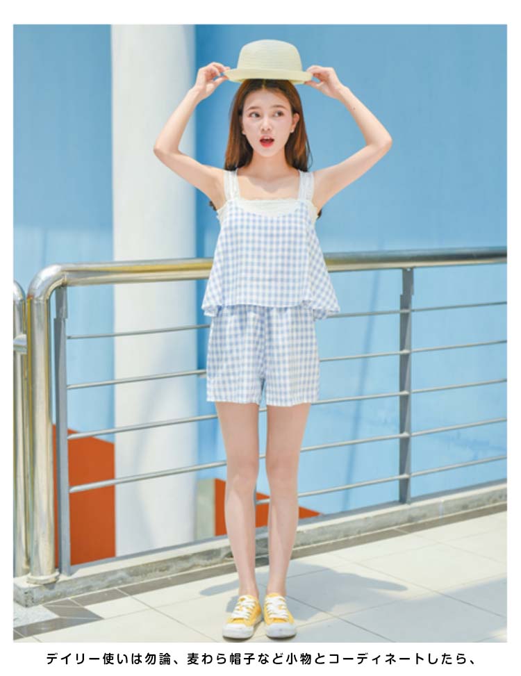 | 今季トレンドのギンガムチェック柄オールインワン!オールインワンだけど、上下セットに見えて、お洒落上級者に決まり!フレアデザインが気になる腰周りをさり気なく隠せて、大人可愛い♪広めに取ったアームホールはペチコートと好相性?大人フェミニンなスタイルが叶えます。デイリー使いは勿論、麦わら帽子など小物とコーディネートしたら、レジャースタイルにも◎これからの季節大活躍に間違いなしです。 | |