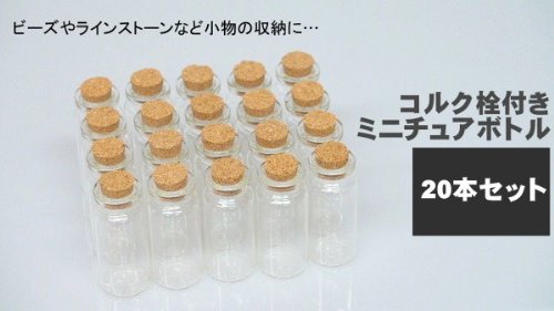 20 sets of glass miniature bottles with cork useful for accessories such as beads and rhinestones.