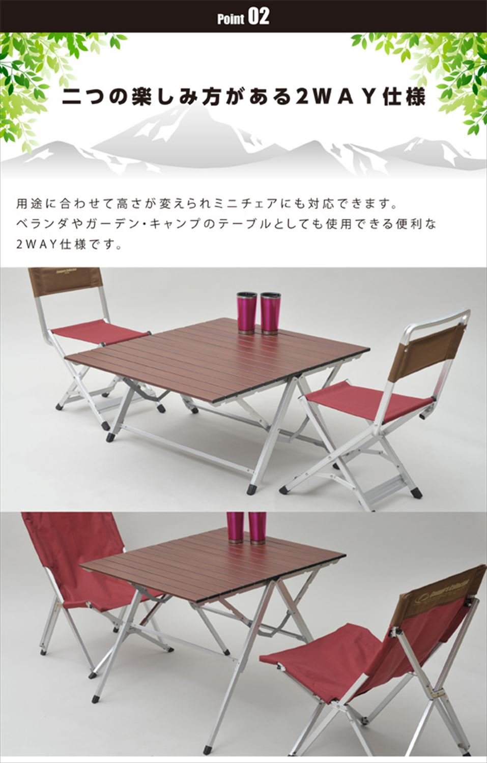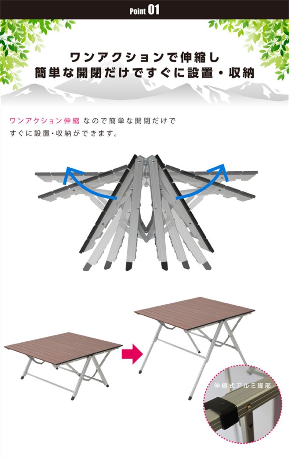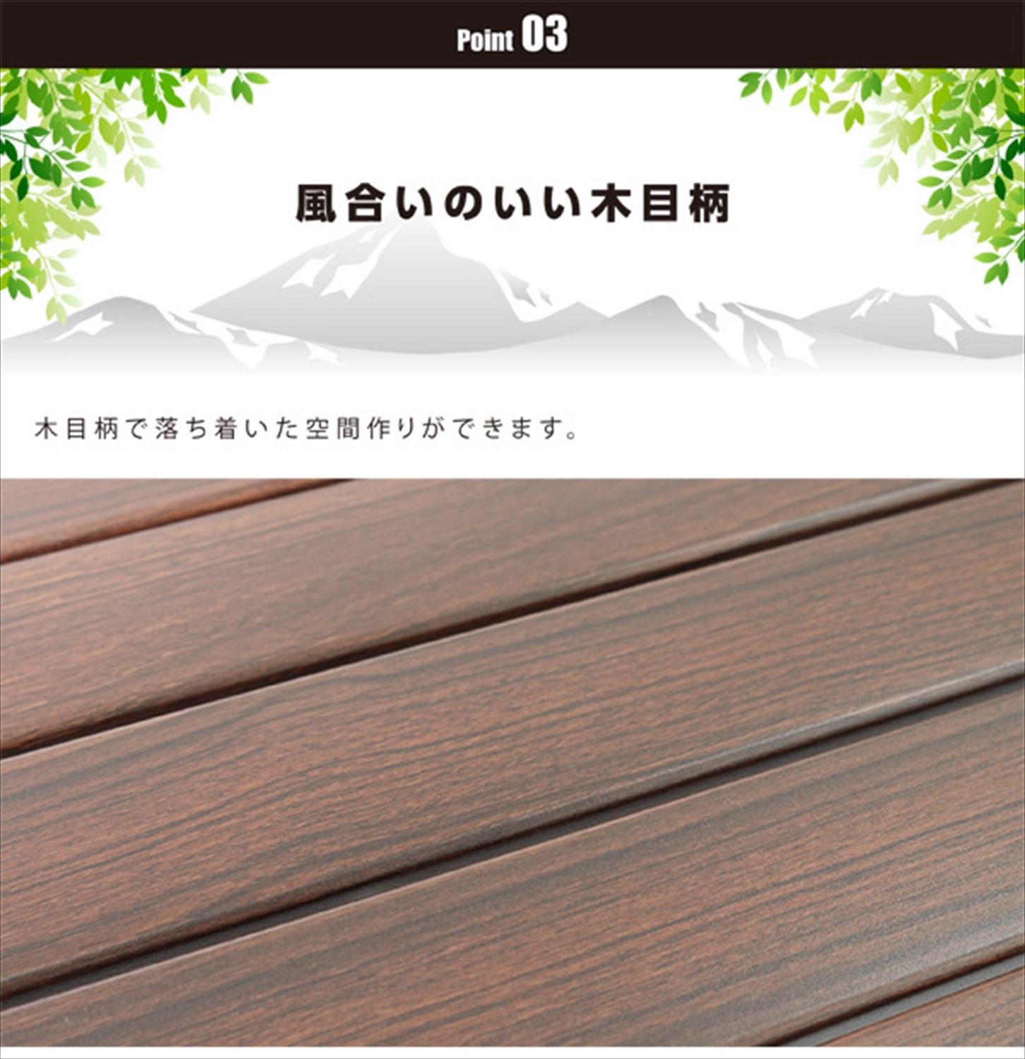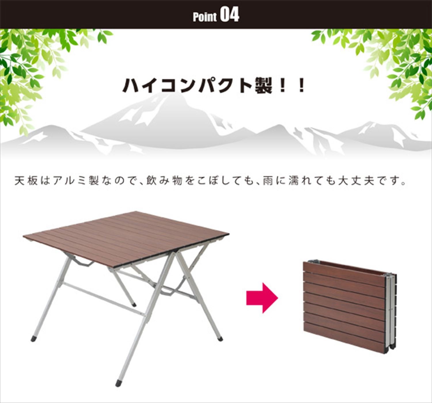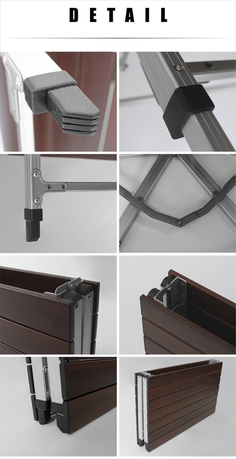 ● New structure frame adoption, easy installation and storage possible with simple opening and closing ● Wood grain pattern top board with a calm atmosphere Good ● Perfect for balconies and balconies ● Height adjustable in two stages active in various scenes ● Top board