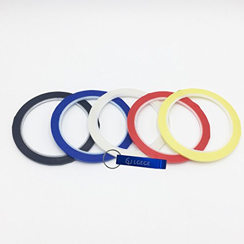 LGEGE 5pcs Assorted Colors Graphic Chart Tape , Artist Tape, 3mm Width, 164ft per roll (1 x black, 1 x white, 1 x blue, 1 x red, 1 x yellow)