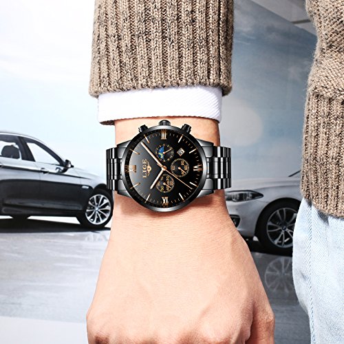 -. Title : SPOTALEN スポテレン 腕時計 ビジネス アナログ表示 MOON PHASE 月相 LIGE9831 メンズ ウォッチ ブラック ステンレス バンド