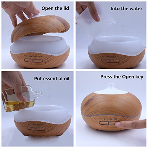 Studio : IYOOVI Publisher : IYOOVI Binding : Kitchen Product Description Specifications Material:ABS plastic and polypropylene Dimensions: Light brown Approx 168*130mm, Brown Approx 168*148mm Capacity of water tank: About 300ml Safety Features: auto shut-off (when empty) Max Power Consumption: 12W Coverage area:10-20 Square meters Suit for Bedroom,Study,Office,Living room,Bathroom,Yoga Room ect Simple and Easy To Use 1.The product should be placed on the desk horizontally. 2.Turn the cover and open it. 3.Open the water tank cap by a bayonet. 4.Pour some water less than the highest water level, add 3-5 drops of essential oil. 5.Lid the water tank with its cap and rotate till they are seamless joined. 6.Connect the USB power supply. Product Characteristics Security protection- water shortage automatic shut-off. Energy-saving protection-12W low energy consumption Use protection - ultra-quiet operation Environmental protection - high quality materials-ABS and Polypropylene What's Included 1 x Essential Oil Diffuser 1 x Charger 1 x Manual 1 x Measuring cup 0