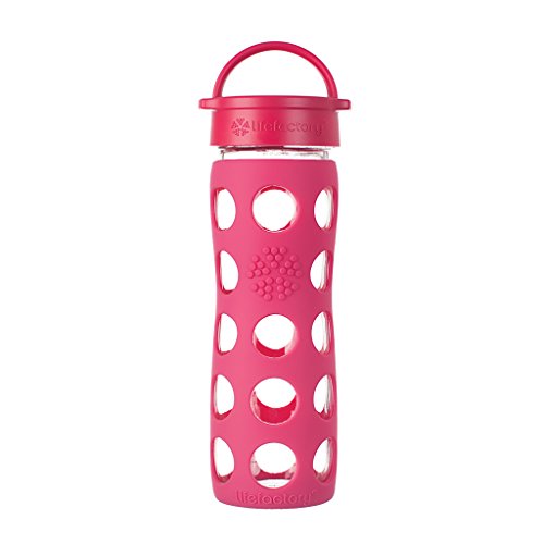 Lifefactory 16-Ounce BPA-Free Glass Water Bottle with Leakproof Cap and Silicone Sleeve, Raspberry