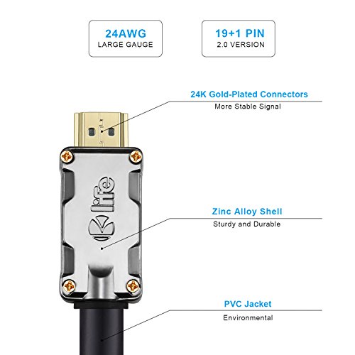 Kolife HDMI Cable 50ft/Ethernet - Ultra High Speed & High Dynamic Range - Supports 4K@60HZ - 24AWG - Audio Return Video for PC, 3D Television, Xbox360, PS3/4, HDTV and More
