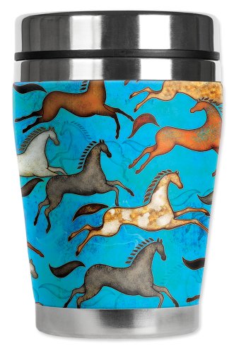 Mugzie Aztec Horses "Mini" Travel Mug with Insulated Wetsuit Cover, 12 oz, Black