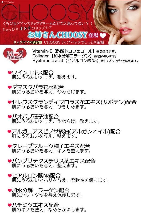 | セット内容 | CHOOSYハイドロゲルリップパック(パープルパール)×20 |