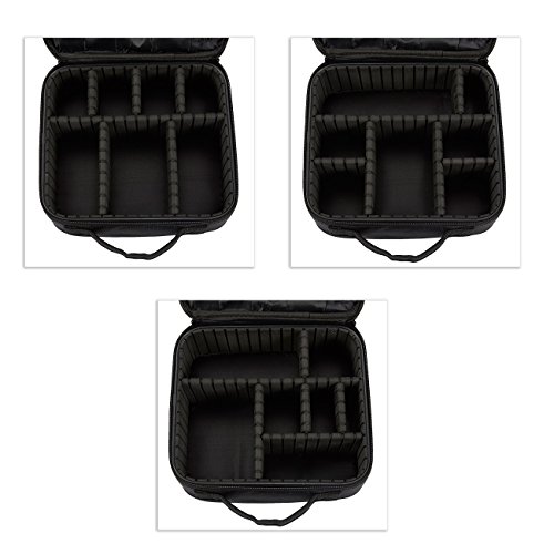 - ADJUSTABLE COMPARTMENTS: This Makeup Bag features customizable compartments with cushioning, for safely packing your cosmetics in whichever way you like. Use the hook and loop dividers to create your own compartments for convenience.