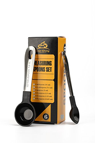 Cool Shiny Measuring Spoon Set, Set of 6 (15 ml), 1/2 (7.5 ml), (5 ml), (2.5 ml), (1.25 ml) and 1/8 (0.625 ml)