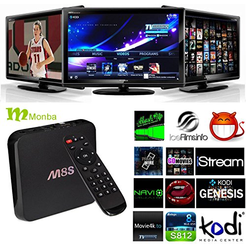 ✔ AMLOGIC S812 QUAD CORE CPU WITH FAST SPEED. Monba M8S TV box has quad-core CPU, Octa-core GPU. Its high machine configuration gives you ultra-fast running speed and professional image processing ability. Awesome home theater and gaming experiences.