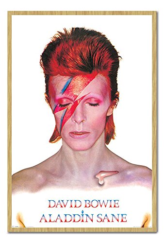 -. Title : David Bowie Aladdin Sane Album Cover Poster Magnetic Notice Board Beech Framed - 96.5 x 66 cms (Approx 38 x 26 inches)
