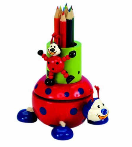 MusicBox Kingdom 43736 Ladybirds with Color Pencils Made of Wood Music Box Playing "Au Claire De La Lune"