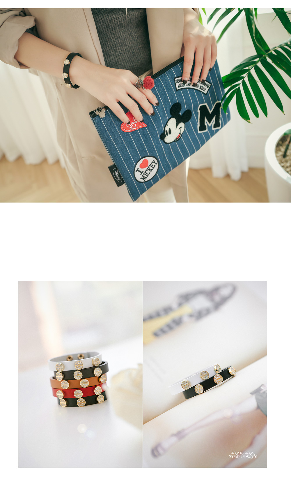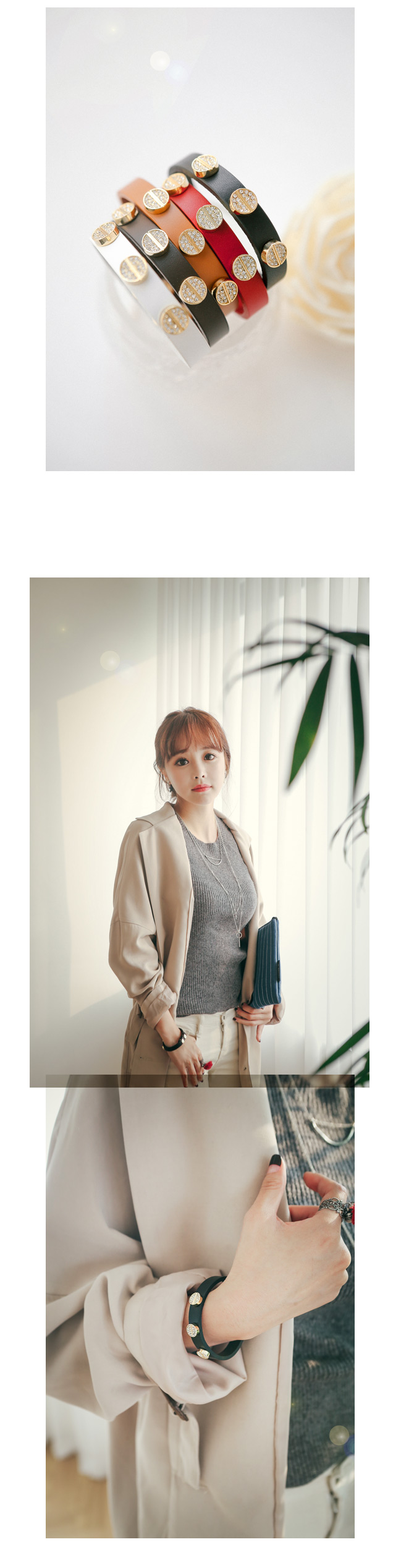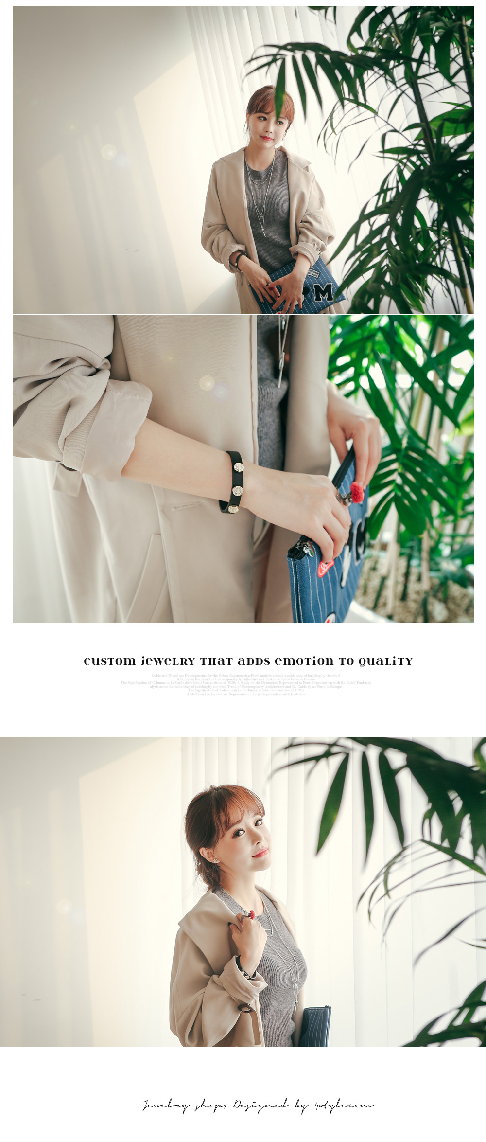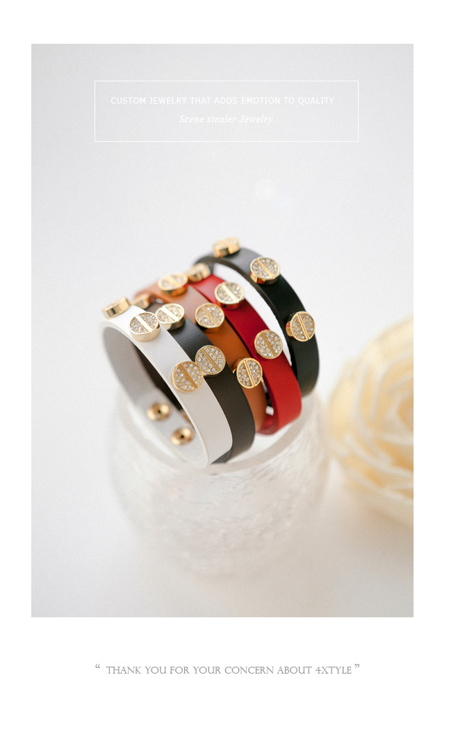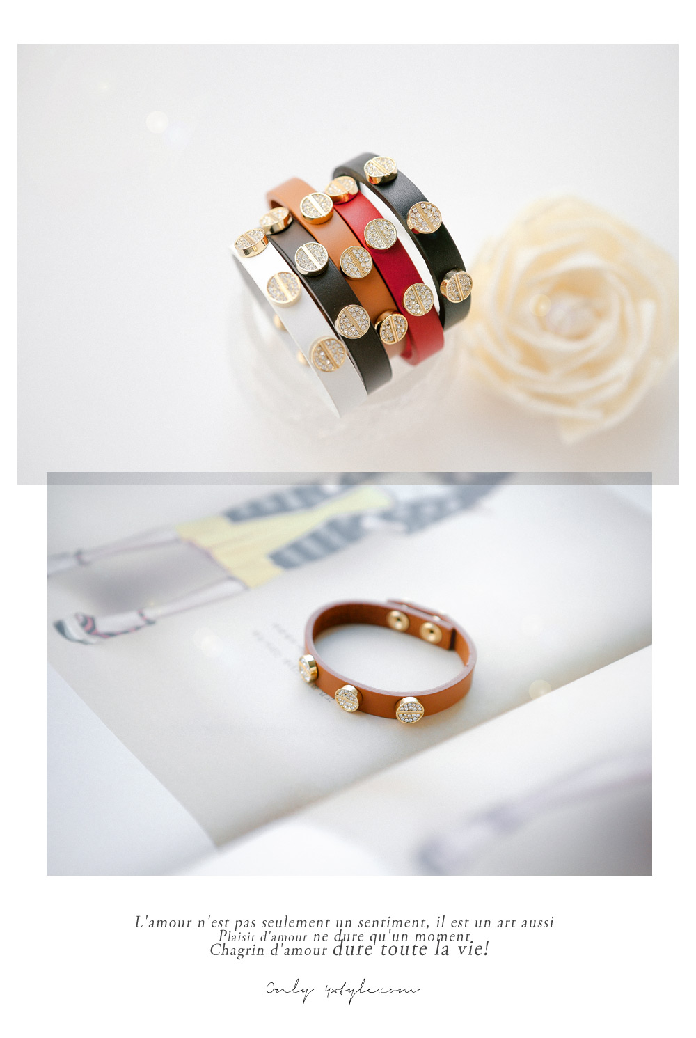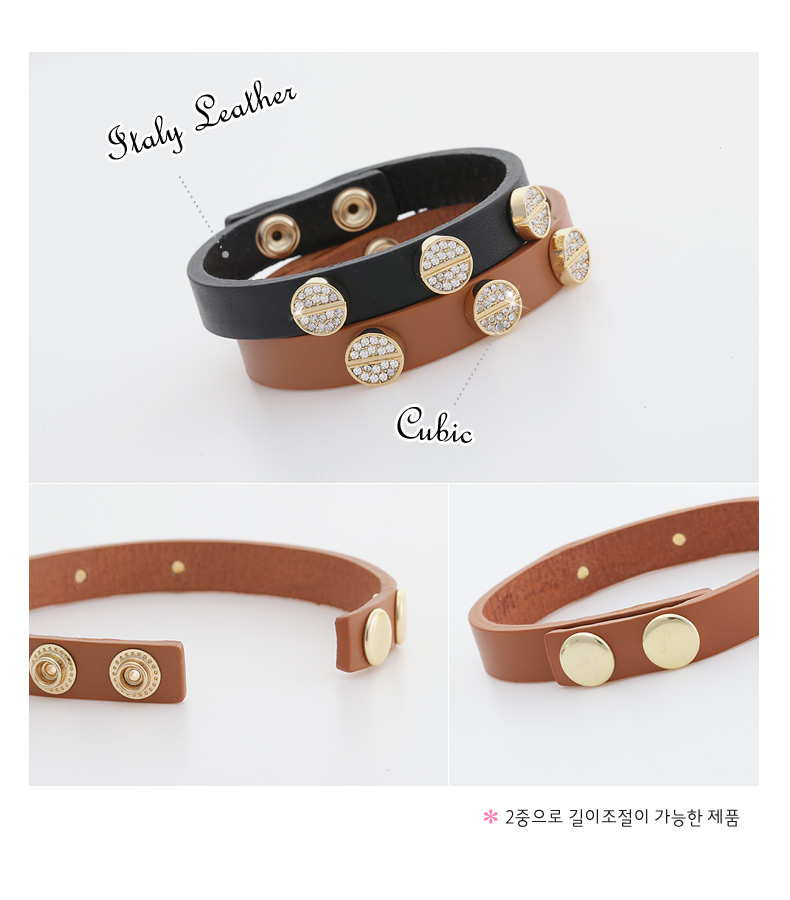 블링블링한 나사 모양의 골드빛 장식이 이태리 가죽과 어울어진 남다른 퀄리티가 느껴지는 가죽 브레이슬릿이예요.