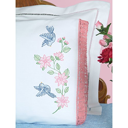 Jack Dempsey Needle Art Birds Hemstitch Edge Pillowcases