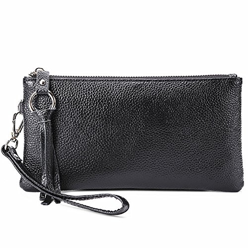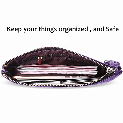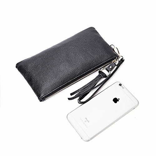 -. Feature : SECURITY. P.R.IVACY. PRACTICALITY. - Equipped with military grade RFID SECURE material, this RFID BLOCKING wallet effectively protects your ID and credit cards from electronic pickpocketing like RFID readers and scanners! / Soft Genuine Leather, feels luxury and comfortable. Looks even better after using for a long time. / Heavy Duty Smooth Metal Zipper and detailed contrast stitching brightens up the wallet. FIT iPhone 5/5S/SE/6/6s/7/7 Plus and so on. / Large capacity: Keep your credit cards, cash, coins, notes, receipts, cheekbook and your cellphone well organized. / Dimensions: 9"L x 5"W x 0.7"H . The Weight is 0.44 pounds.