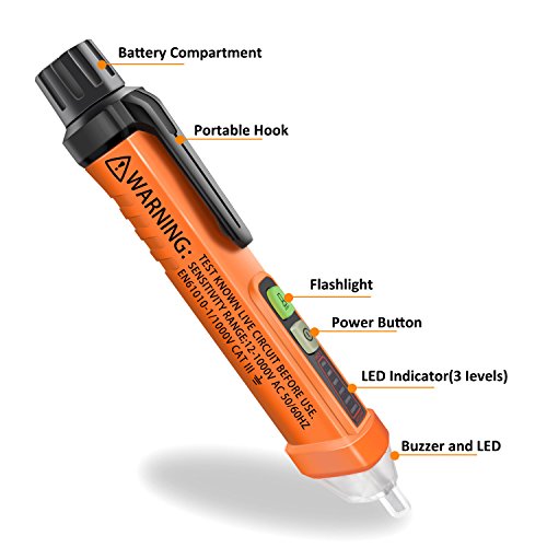 Distinguish the live and null wire through different frequency alarm sound AND led indicator; Voltage detection range 12-1000V AC