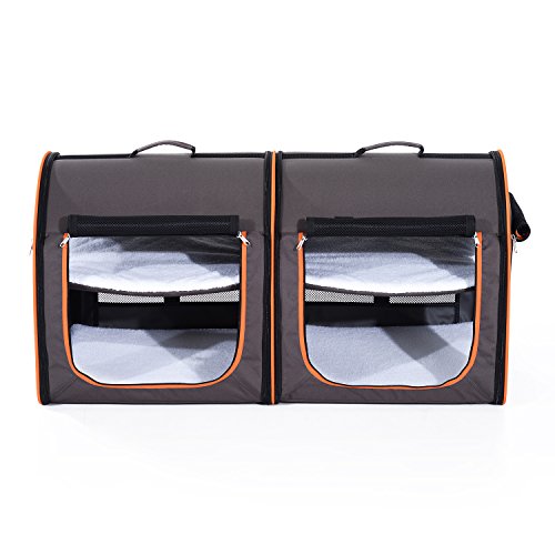 -. Binding : Misc. -. Brand : Pawhut -. Color : Grey -. EAN : 0842525104043 -. Feature : Soft-sided double enclosure portable pet crate for small pets weighing up to 22 lbs on each side / Functions as one large open kennel space or zip up the center divider to create two smaller areas / Two mesh-ventilated screens for visibility and ventilation / Folds flat for travel or storage with handy carrying strap / Water-resistant, easy to clean polyester fabric -. Label : Pawhut -. Manufacturer : Pawhut -. Model : D00-080GY -. MPN : D00-080GY -. NumberOfItems : 1 -. PackageQuantity : 1 -. PartNumber : D00-080GY -. ProductGroup : Pet Products -. ProductTypeName : PET_SUPPLIES -. Publisher : Pawhut -. Size : 39 inch -. Studio : Pawhut -. Title : Pawhut 39” Soft-Sided Portable Dual Compartment Pet Carrier - Gray -. UPC : 842525104043